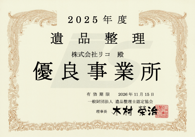 遺品整理士・事件現場特殊清掃士・焚上士在籍の、