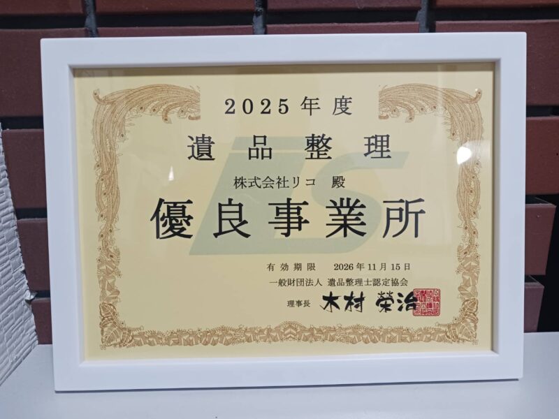 一般財団法人 遺品整理士認定協会様に加入をさせていただいております。