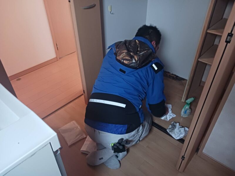 洗濯機や冷蔵庫が置いてあった場所の清掃です。