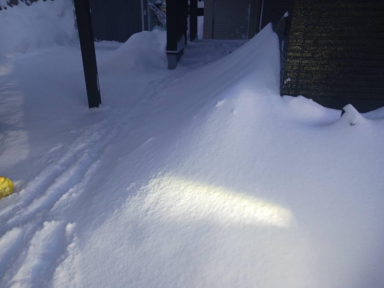 日の当たらない下屋の雪も、処理をしないと