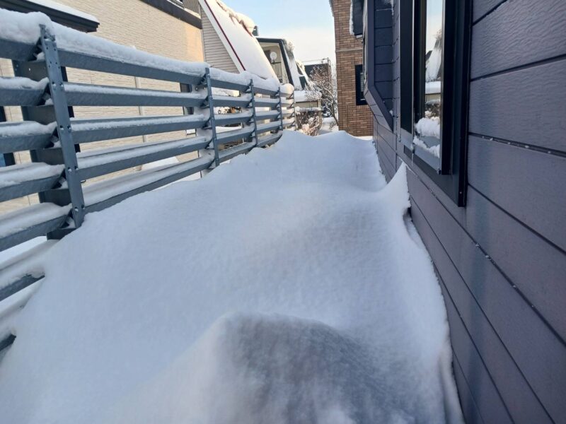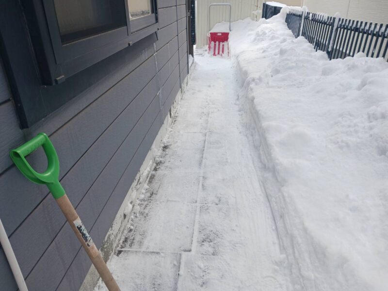 日陰になる家の裏側は雪が溶けにくいですよね。