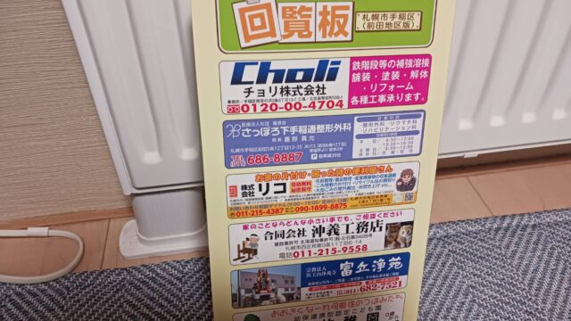 (株)リコの回覧板広告が 手稲区の新発寒地区と前田地区の2カ所に登場です!!
